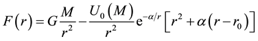 Figure 1. IYF potential per unit of mass as function of the distance between objects gravitationally bounded (see [14] for details).