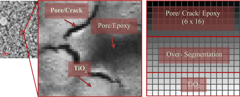 This method could help reduce the user bias in segmentation by defining the pore/epoxy pixel color. This helped to quantify the pores in each image; however, there are challenges to be addressed here. First, a lack of a system to automate the FESEM stage for acquiring numerous images easily. Secondly, the FESEM