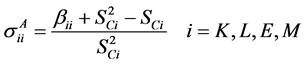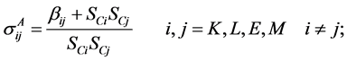 where xi stands for input i and SCi depicts a share of an input i in total cost. Note that the last portion of Equation (4) represents a system of demand functions for the four inputs: K, L, E, and M.