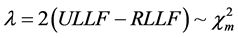 where ULLF and RLLF are the maximized values of the unrestricted and the restricted log-likelihood functions, respectively, while m, the subscript of c2, depicts the number of the imposed restrictions, which are used as degrees of freedom. Multiplying the parenthesized value in Equation (14) by two approximates the LR to chi-square distribution [18] . The testing procedure involves a simple comparison of the calculated value of