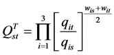 Finally, the multiplicative form of the Törnqvist quantity index formulation in Equation (15) was used to aggregate the three outputs. This procedure is a discrete time approximation to the Divisia index procedure [19] - [21] .