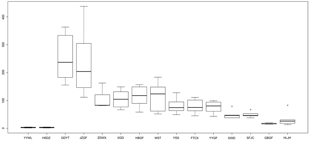 It can be seen from Figure 1, the median in R & D expenses of YYWL is the largest, which of GBGF is the smallest. Moreover, the R & D expenses of HSDZ is second to YYWL. In the boxplot, the position of YYWL’s box body is the highest, and the horizontal line between the lower quartile and the upper quartile represents the position of the median, indicating that its R & D expense is relatively highest. Similarly, GBGF is the smallest. But its inter quartile range is the largest with the longest box body. Combining with concrete data, it shows a geometric average growth of 26.09% in 2012-2016.