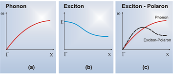 Figure 20. (a) Dispersion of a LA phonon; (b) Dispersion of a 4f exciton; (c) Dispersion of an exciton-polaron.