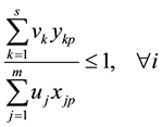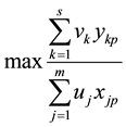 Assuming that there are n DMUs, each with m inputs and s outputs, the relative efficiency score for a test DMU p is given by: