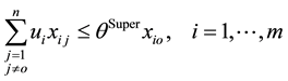 The input-oriented super efficiency CCR model is expressed as [36] :