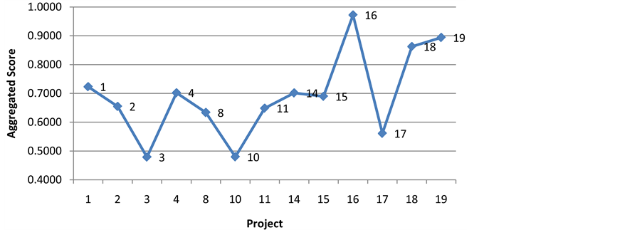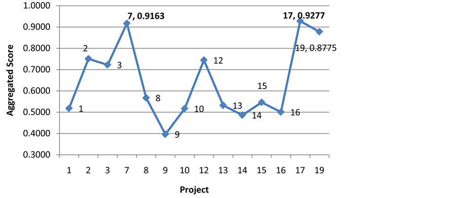 Figure 8 presents the final aggregate score for the different projects. The suggested technique have successfully selected project 16 although projects 18 and 19 are close competing peer projects.