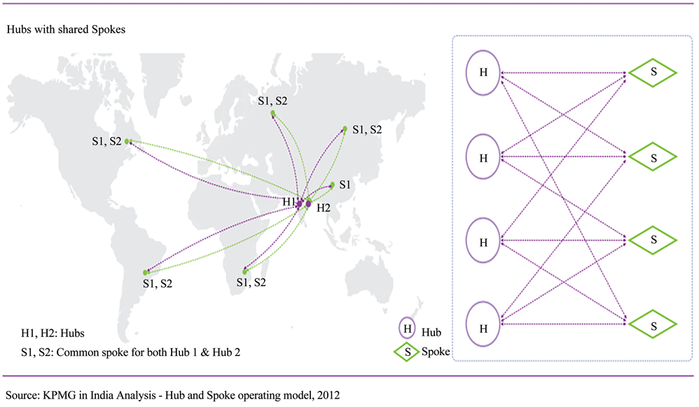 need. This indicates that the spoke is supposed to have high-level management that can receive and execute tasks from the hubs. The spoke will also need to have a different management in operations. Hence, this model needs some degree of corporation between the spoke and the hubs to ensure smooth communications and operations.