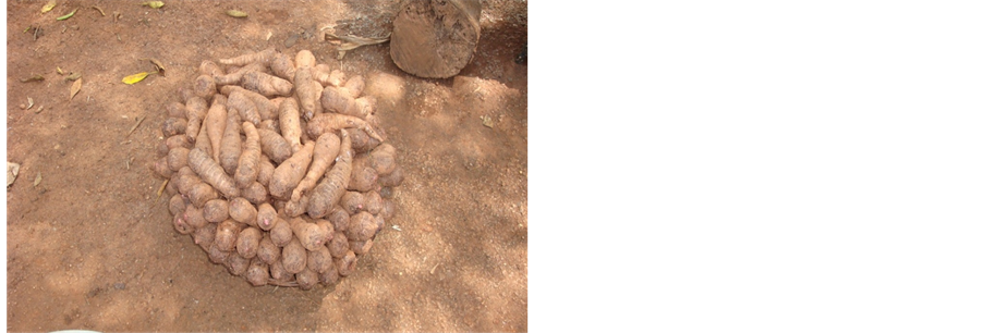 Biophysical and socio-economic factors accounting for the lower yields include low yielding cultivars, pest and disease, poor husbandry practices, deteriorating soil fertility, lack of processing and innovation of products. Cocoyams are susceptible to attack by pests and diseases. A typical pest is the slugs that wound corms, providing entry points for spoilage micro-organisms. Losses can reach 60% of corms. Prevention is by use of disease free planting material, weeding and hilling and treatment with copper-based pesticides [8]. Figure 1 shows pictures of freshly harvested cocoyams.