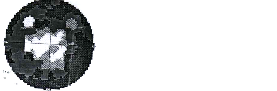 Figure 2. Female patient with lumboperitoneal shunt, (a) Preoperative Axial normal CT brain of the patient, (b) Preoperative fundus examination showed advanced papilledema, (c) Preoperative Visual field of the patient showed concentric contraction of the field in the left eye, (d) Preoperative Visual field of the patient showed tubular field of the right eye, (e) Postoperative fundus examination showed complete resolution of papilledema, (f) and (g) postoperative visual field showed bilateral improvement of the field.