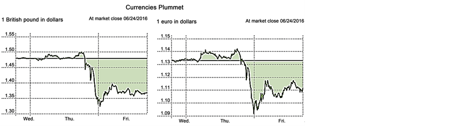 heavily ( Mullen et al., 2016 ). The plummeting of the British pounds and the euro against the US dollar is illustrated in Figure 9.
