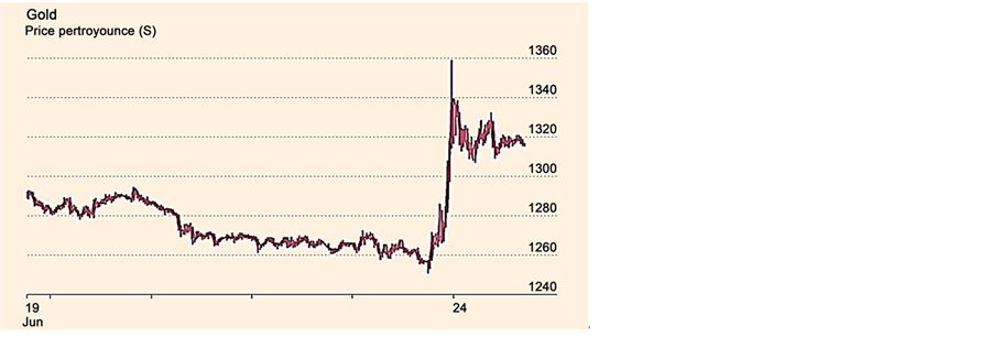 The likelihood of increase in risk aversion among investors following the referendum’s results also caused emerging markets to suffer as the US dollar rallied. The South African rand, the Polish zloty and Mexican peso were down more than 3% ( Mackenzie & Platt, 2016 ) and the value of the Ghana cedi recorded a marginal plunge of 1.04% on the interbank foreign exchange market ( Lokko, 2016 ). Some currencies were safe havens for investors which included the Japanese yen, the Swiss franc and even Bitcoin ( Mullen et al., 2016 ; Riley & Long, 2016b ). According to ( Mackenzie & Platt, 2016 ), the yen soared as much 6.7% to ¥99.02 at the worst of the fallout in currency markets.