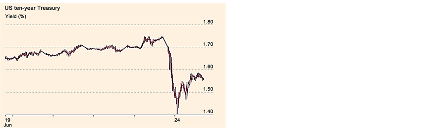 Figure 10. Global stock markets reaction to Brexit win after Trading on June 24, 2016.