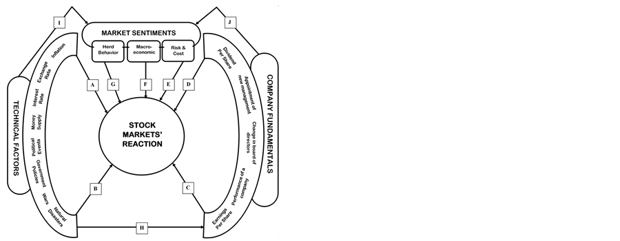 vi) J represents the interrelation between company fundamentals and market sentiments. The arrow J depicts the influence of company fundamentals on market sentiments. Company fundamentals such as performance of company, earnings and dividends declaration, appointment of new management, change in board of directors, etc. may affect individuals’ emotions and behavior which are elements of market sentiments.