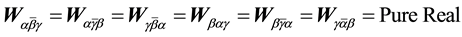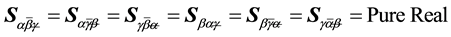 From the same equations, the real part is symmetric in indices 2 and 3 as well as 1 and 2. The most general solution is an arbitrary, fully symmetric third rank real matrix. All permutations of the three indices must give the same real value for S. We denote this homogeneous solution as