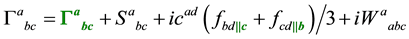The required term to create a covariant form is given in Equation (3.27). It is fully symmetric in (α, β, γ) plus purely imaginary and thus can be incorporated into the definition of W, which is an arbitrary fully symmetric additional field.