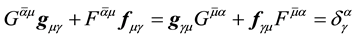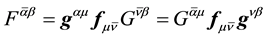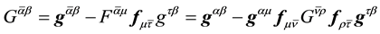 Here g is the usual symmetric metric tensor and f is an antisymmetric tensor. We will use bold font for those two basic fields, (gαβ and fαβ) as well as the two others (S and W), which naturally appear later. Thus it will be easy for the reader to identify the key fields. One may correctly surmise from this notation that f will be identified with electromagnetism. Since Gβα is not the inverse of gαβ due to the impact of the imaginary part fαβ, we will use the standard notation gβα for the inverse of gαβ. With this definition, we list some algebraic relationships in Equations (2.2c)-(2.2g). By expanding the equation