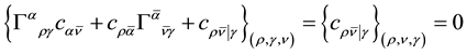 The E & M Field Equation: Once we have the transpose symmetry for the Christoffel symbols and the zero derivative Equations (3.11a)-(3.11b), we can derive the desired E & M field equation by antisymmetrizing (3.11a) i.e. summing over all signed permutations of ρ, ν and γ (this is denoted {・・・} ρ, ν, γ). Since the Christoffel symbols are all symmetric in the lower indices, all the Christoffel terms vanish, leaving only one term in (3.12).