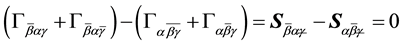 We can get another symmetry condition for the S tensor by differencing Equations (3.10a) and (3.10b) (copied below) to get (3.18a) which becomes (3.18b) by rearranging terms and applying the definition of the S tensor. By using the complex conjugation relationship in (3.17f), we get the final equation we need in (3.18c).