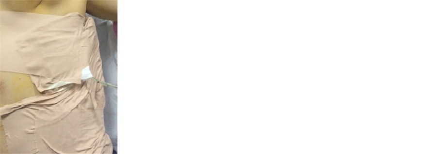 Figure 2. The dressing was fixed with a plaster and anterior view of the chest tube.