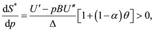 follows that B* is negatively related to p and S* is positively related to it. This proves part (a) of Proposition 1. To prove part (b), we totally differentiate (4), using (10) and (11), obtaining