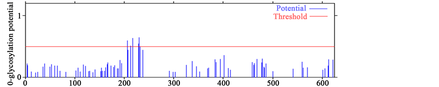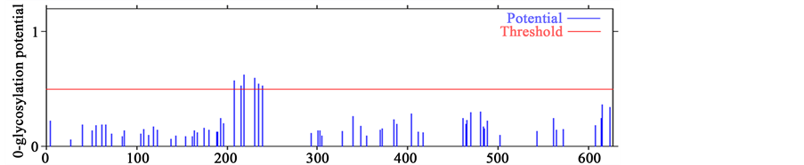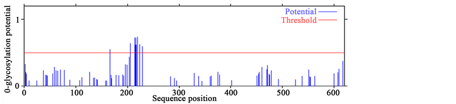 Figure 2. Prediction of O-glycosylation sites in SERK and SERK-like genes. (A) Protein sequence of AtSERK1; (B) Protein sequence of MtSERK1; (C) Protein sequence of AtSERK4.