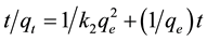 metal ion adsorbed at equilibrium and time t (min) respectively. The linear form of pseudo-second-order equation can be written as