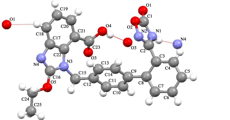 Table 2. Selected bond length, bond angle, and dihedral angle values in Azilsartan type I crystal.