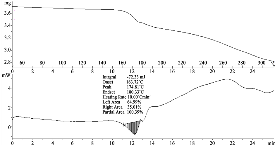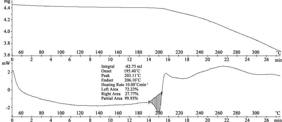 Figure 1. DSC Curve of Azilsartan type I crystal. (The rate of heating is 10˚C/min).