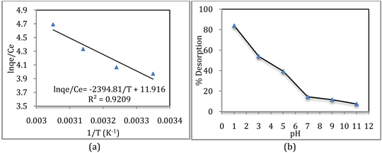 Figure 5. (a)Thermodynamics; (b) Effect of pH on desorption of lead.