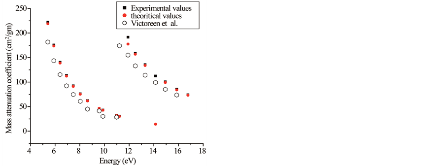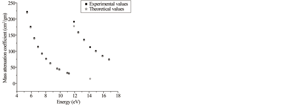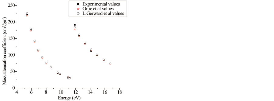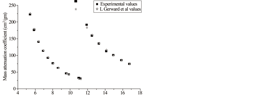 Column 3 in Table 1 provides the theoretical estimates of mass attenuation coefficients derived from the total photon attenuation cross-section obtained by combining the photo electric cross-sections of Scofield [2] coherent and incoherent scattering cross-sections of Hubbel [3] and Hubbell & Overbo [4] respectively.