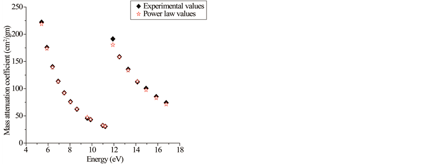 The predictions of the semi-empirical schemes are also given in graphical format in Figure 2(a) to Figure 2(e) each graph plotting the values due to one-semi-empirical scheme along with the experimental and theoretical values for close comparison. Figure 2(a) shows experimental values compared with the theoretical values alone. The values due to Victoreen are plotted in Figure 2(b). The values due to Power Law in Figure 2(c) those due to Orlic et al. [5] are plotted in Figure 2(d) those values due to the improved Power Law of Gerward are plotted in Figure 2(e).