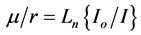 where Io is the intensity, Ln is the transmission intensity, r is the density of mass and x is the thickness obtained from the mass “m” and area “a” of the liquid film as