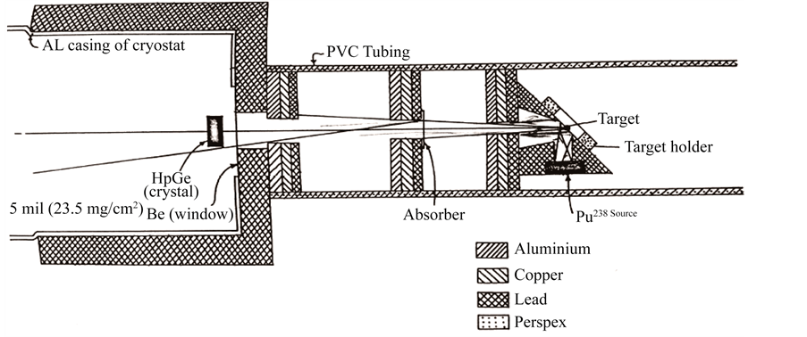 The experimental arrangement is illustrated in Figure 1. The primary source R, which is a strong Pu238 point source of 10 mci, is properly shielded to allow controlled X-rays to interface on the selected scatter, S. The characteristic X-rays from the scatters route through a Compton shield circular slit and then through the absorber film of Arsenic oxide and two more circular slits (filters) to reach the detector stationed in a lead box, this box shields the detector from unwanted radiation emitted if any from other origin(S).