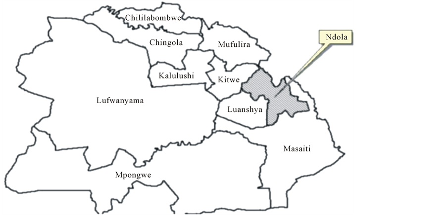 Figure 2. Map depicting Ndola district of Zambia. Source: City of Ndola―District situation analysis, 2005.