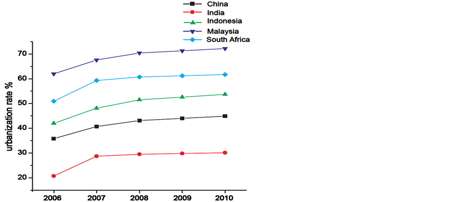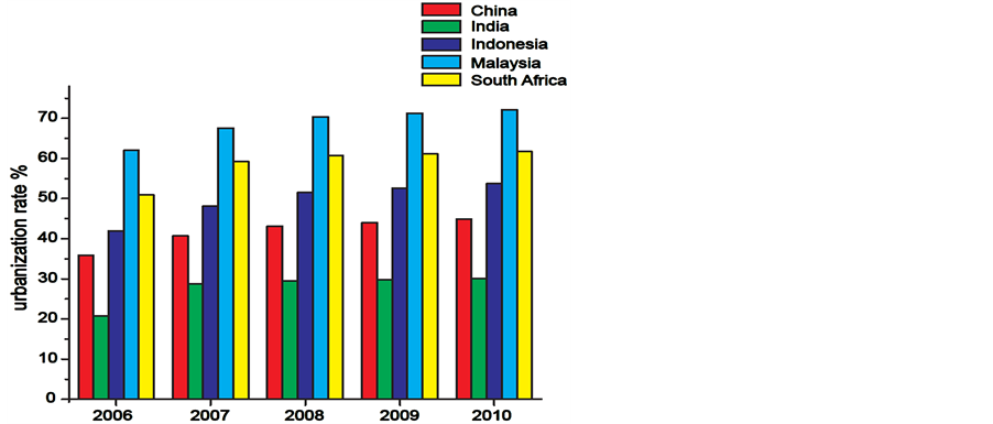 Figure 4. Development tendency of urbanization rate (%) of some countries between 2006 and 2010. Source: Ba & Yang, 2013 .