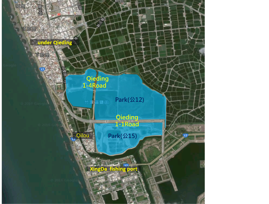 For this, the City Hall added the Qieding 1 - 4 road in the urban development plan in 2002. However, the Qieding wetland (the part that was used to be the salt fields) was designated as a “national important wetland of local level” in 2007 by the Construction and Planning Agency, Ministry of the Interior. The development was pending due to the environmental protection issue. Without the road to bring tourists and business opportunities, Qieding was isolated and urban development stopped as lands were idle, local people started to leave and local development was put in hibernation. In order to improve the current status of the wetland and create a habitat friendly to water birds, the City Hall started to build earth embankment at the Gong 12 area north to the 1-1 road to regulate water levels, allow the pools of water to flow, reduce the loss of water and increase biological resources. At the same time, Gong 15 was developed into an environment for habitation and reproduction of water birds (see Figure 2 for locations).