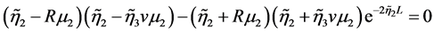 Applying the boundary conditions at z = 0 and z = L to the plane wave equations solutions, we obtain the dispersion equation as follows:
