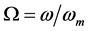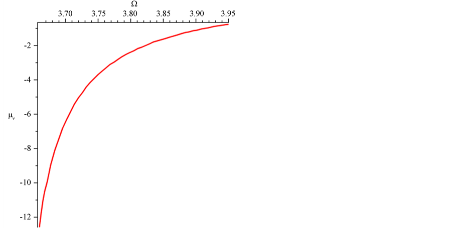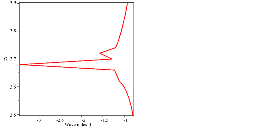 Figure 3. The dependence of Ω on the wave index for the negative NIM layer thickness L = 4 mm.