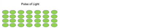 where #P is number of photons and tP is the Planck time. Let us say we have a burst of light, or a captured group of photons as illustrated in Figure 5, a pulse of light consisting of 28 photons. The number 28 is arbitrary merely to illustrate a concept.