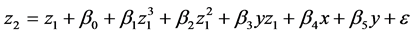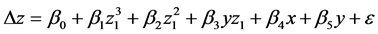 To operationalize the cusp catastrophe model for behavior research, Guastello [6] [7] developed the polynomial regression approach to implement the concept of cusp model. Since the first publication of this method, it has been widely used in analyzing real data as we described in the Introduction. In this study, we referred the method as Gastello’s polynomial cusp regression. According to Gustello, this approach is derived by inserting regression coefficients into the Equation (1), with change scores (the differences in the measurement scores of a behavior assessed at time 1 and time 2) as a numerical approximation of: