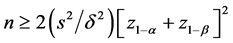 As detailed in Chapter 7 in [17] , five factors related to research design interplay with each other to determine the statistical power and sample size for a simple t-test: 1) the rate of type-I error; 2) the desired statistical power, 3) the expected treatment effect size of, 4) the standard error for the expected effect size, and 5) the sample size. The mathematical formula can then be derived as. Therefore, to determine the required sample size, we would need to provide data for four of the five design characteristics. Typically, the type-I error is set at 0.05 and the desired power is chosen to be 0.85 (or 0.80). The other two will be treatment effect size and its standard error. Depending on actual research questions, different values are often selected for these two characteristics.