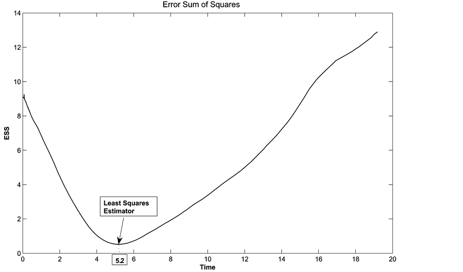 Figure 1. Error sum of squares and the least squares estimator of the change-point.