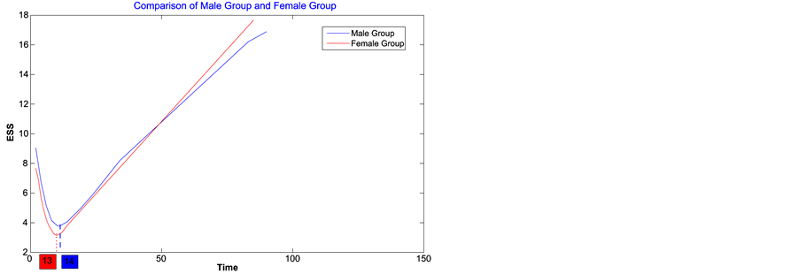 Figure 3. Least squares estimate of change-point for female and male groups.