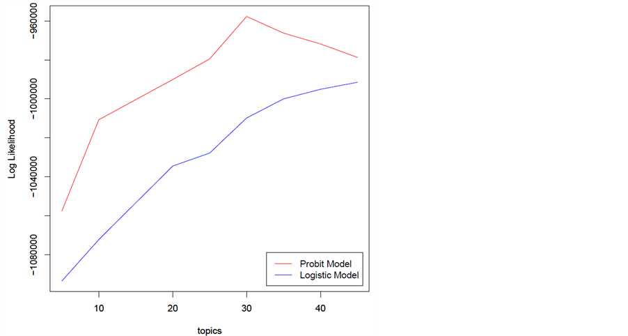 Central to topic modeling is the need to determine for a given corpus the optimal number of latent topics. As it is the case for most latent variable models, this task can be formidable at times, and there is no consensus among machine learning researchers as to which of the existing methods is the best. Figure 1 shows the loglikelihood as a function of the number of topics discovered in the model. Apart from the loglikelihood, many other techniques are commonly used such as perplexity, harmonic mean method and so on.