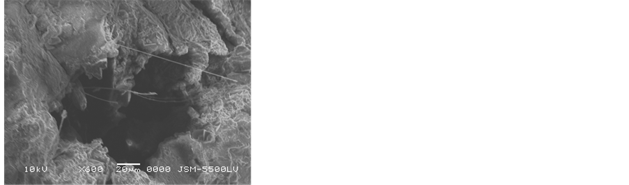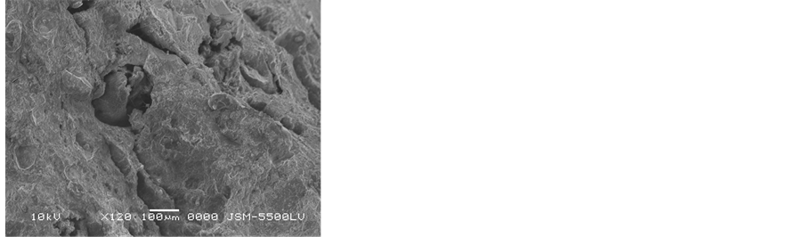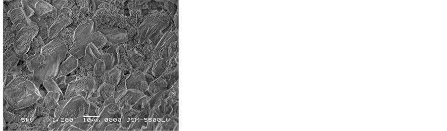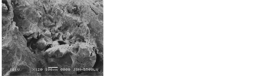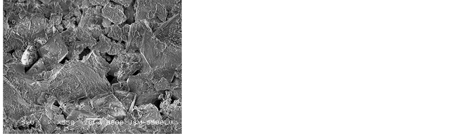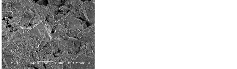 deterioration cause for the samples is abundance of soluble salts. Sodium chloride was existing between mineral constituents of stone and destroyed their mineral constituents. It also showed weathering phenomena such as pitting, voids, cracking and micro-exfoliation at grain boundaries. In addition dissolution of cements occurs of the sandstone leads to an increasing in porosity, disintegration and loss of cohesion of the stone causing the sandstone became preamble and leads to decrease of strength qualities. SEM observations showed extensive penetration of heterotrophic micro flora, composed of algae and fungi. This type of biological growth provides a wet environment for chemical and biological interaction which increases the rate of weathering [1] . SEM investigation of the mortar samples showed the collapse of internal structure, voids, loose of binding material and NaCl salts crystallization between mineral grains (Figure 12).