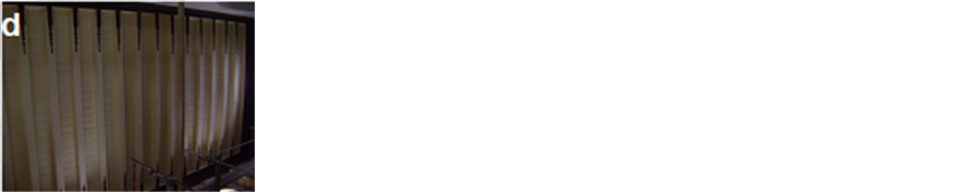 Figure 18. Restoration steps of the ceiling of Helal mosque. a―Deteriorated ceiling wood; b―New wooden panels during restoration process; c―Certekt layer; d―The ceiling after repaired.