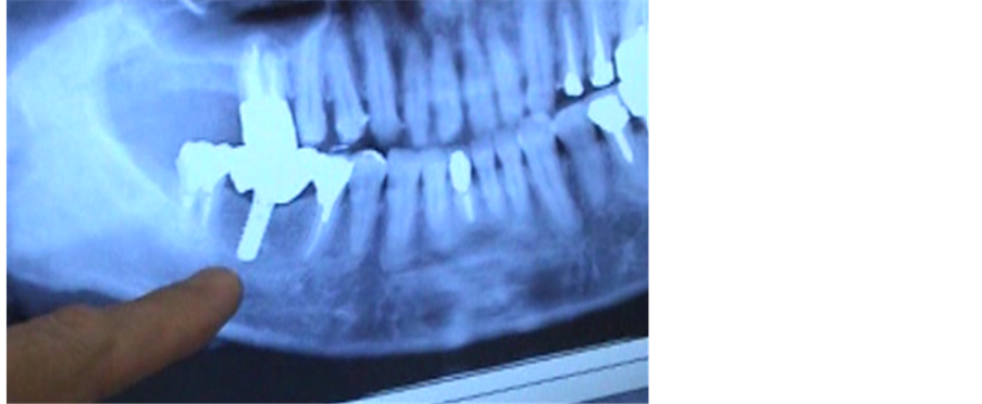 Figure 1. The titanium implant in the subject’s right lower alveolar bone.