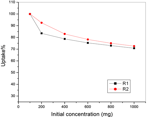 Figure 10. Effect of initial metal ion concentration on the uptake