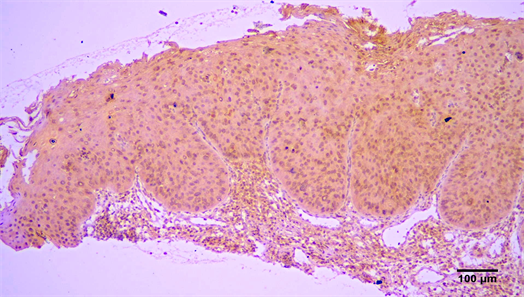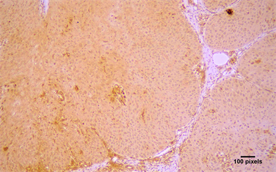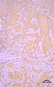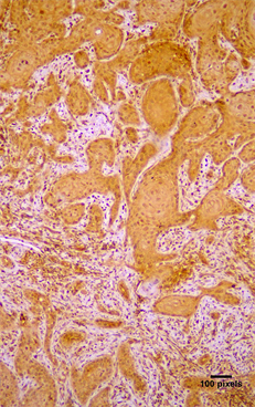 Figure 2. Immunohistochemical expression of Arp2 (+++) in a VSCC (streptavidin-biotin-peroxidase immunostaining, original magnification ×10).