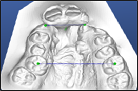 Inter-molar distance (mm): the distance between the median point of palatinal and buccal tubercle of first molar tooth in the right and left segments in maxillary segment.